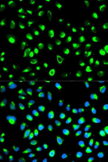 Immunofluorescence analysis of U2OS cell using NDRG1 antibody. Blue: DAPI for nuclear staining.