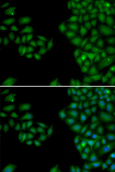 Immunofluorescence analysis of HeLa cell using NEFL antibody. Blue: DAPI for nuclear staining.
