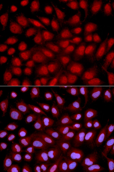 Immunofluorescence analysis of U2OS cell using NFATC1 antibody. Blue: DAPI for nuclear staining.