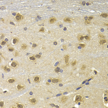 Immunohistochemistry of paraffin-embedded rat brain using NUDT6 antibody at dilution of 1:200 (40x lens).