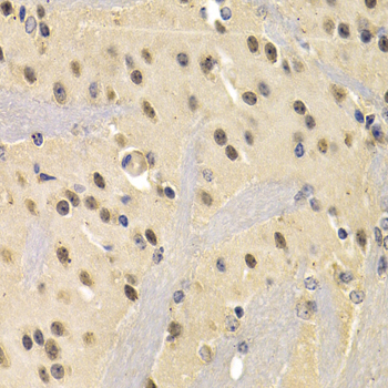 Immunohistochemistry of paraffin-embedded mouse brain using NUDT6 antibody at dilution of 1:200 (40x lens).