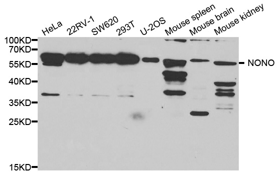 Western blot analysis of extracts of various cell lines,using Nono antibody.