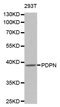 Podoplanin is a type-I integral membrane glycoprotein with diverse distribution in human tissues. The physiological function of this protein may be related to its mucin-type character. The homologous Podoplanin in other species has been described as a differentiation antigen and influenza-virus receptor. The specific function of Podoplanin has not been determined, but it has been proposed as a marker of lung injury (1).