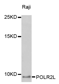 Western blot analysis of extracts of Raji cell line, using POLR2L antibody.