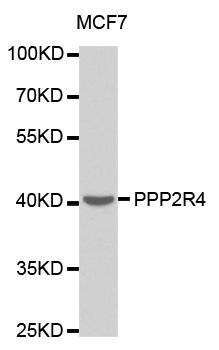 Western blot analysis of extracts of MCF7 cell line, using PPP2R4 antibody.