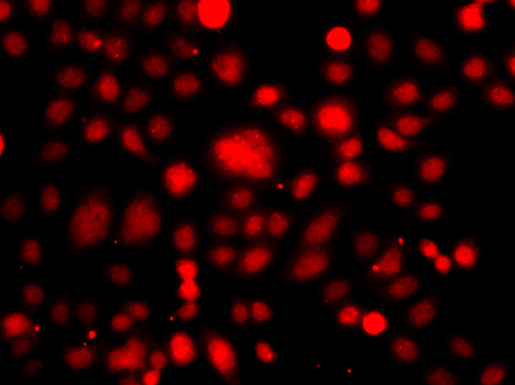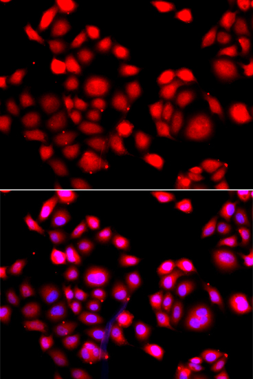 Immunofluorescence analysis of A549 cell using PRDM14 antibody. Blue: DAPI for nuclear staining.