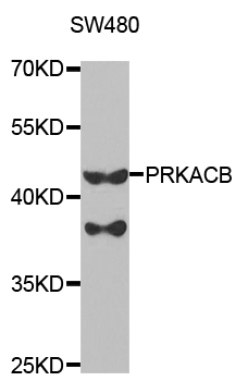Western blot analysis of extracts of SW480 cell line, using PRKACB antibody.