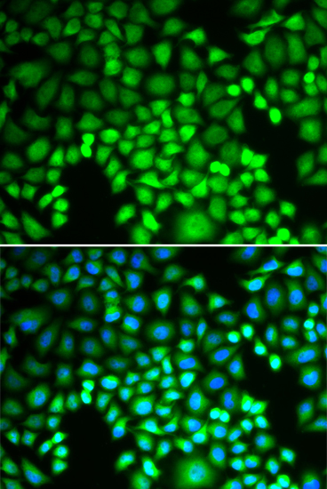 Immunofluorescence analysis of U2OS cell using PSMA4 antibody. Blue: DAPI for nuclear staining.