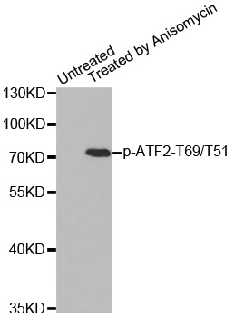 | Immunogen | A phospho specific peptide corresponding to residues surrounding T69/T51 of human ATF2 |
