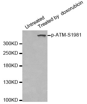 Western blot analysis of extracts of 293 cells, using phospho-ATM-S1981 antibody.