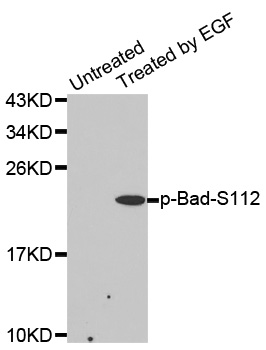 | Immunogen | A phospho specific peptide corresponding to residues surrounding S112 of human Bad |