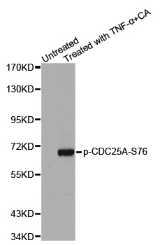 | Immunogen | A phospho specific peptide corresponding to residues surrounding S76 of human CDC25A |