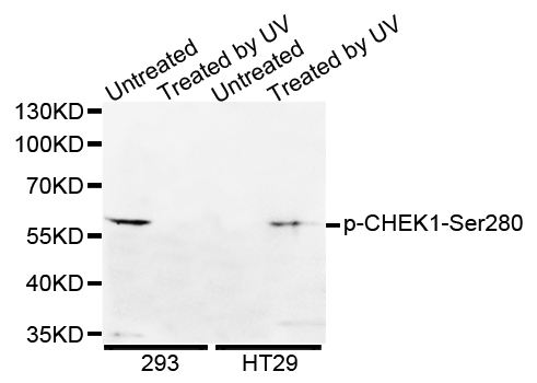 | Immunogen | A phospho specific peptide corresponding to residues surrounding S280 of human CHEK1 |
