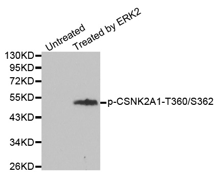 | Immunogen | A phospho specific peptide corresponding to residues surrounding T360/S362 of human CSNK2A1 |