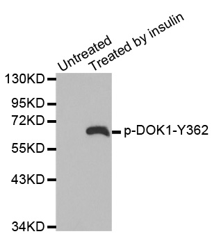 | Immunogen | A phospho specific peptide corresponding to residues surrounding Y362 of human DOK1 |