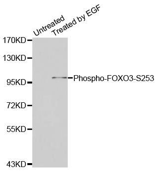 | Immunogen | A phospho specific peptide corresponding to residues surrounding S253 of human FOXO3 |