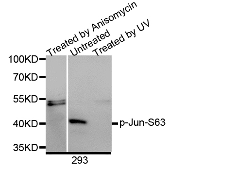 | Immunogen | A phospho specific peptide corresponding to residues surrounding S63 of human c-Jun |