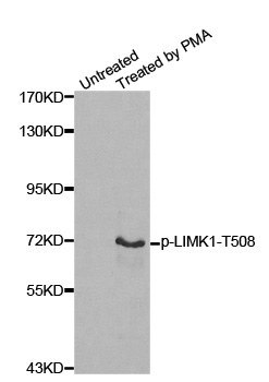 | Immunogen | A phospho specific peptide corresponding to residues surrounding T508 of human LIMK1 |