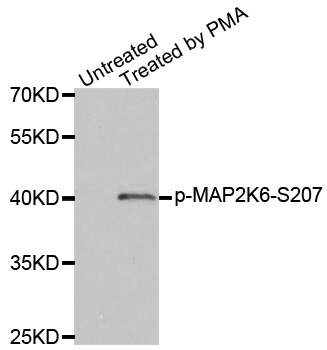 | Immunogen | A phospho specific peptide corresponding to residues surrounding S207 of human MAP2K6 and S189 of human MAP2K3 |