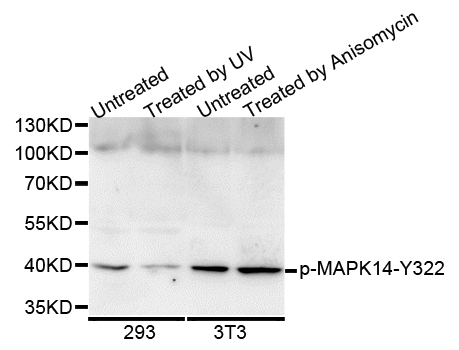 | Immunogen | A phospho specific peptide corresponding to residues surrounding Y322 of human MAPK14 |