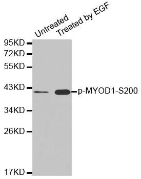| Immunogen | A phospho specific peptide corresponding to residues surrounding S200 of human MYOD1 |