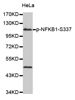 | Immunogen | A phospho specific peptide corresponding to residues surrounding S337 of human NFKB1 |