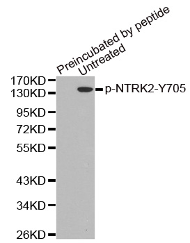 | Immunogen | A phospho specific peptide corresponding to residues surrounding Y705 of human NTRK2 |