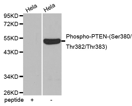| Immunogen | A phospho specific peptide corresponding to residues surrounding S380/T382/T383 of human PTEN |