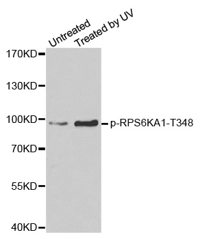 | Immunogen | A phospho specific peptide corresponding to residues surrounding T348 of human RPS6KA1 |