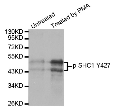 | Immunogen | A phospho specific peptide corresponding to residues surrounding Y427 of human SHC1 |