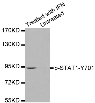 | Immunogen | A phospho specific peptide corresponding to residues surrounding Y701 of human STAT1 |
