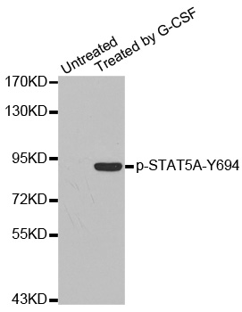 | Immunogen | A phospho specific peptide corresponding to residues surrounding Y694 of human STAT5A |