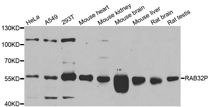 Western blot analysis of extracts of various cell lines, using RAB3IP antibody.