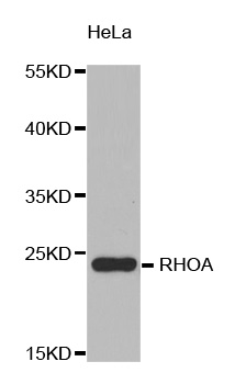 RhoA is a small GTPase protein known to regulate the actin cytoskeleton in the formation of stress fibers. It acts upon two known effector proteins: Rho kinase (ROCK) and mdia (Diaphenous protein). RhoA is part of a larger family of related proteins known as the Ras superfamily.
