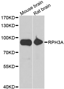Western blot analysis of extracts of various cell lines, using RPH3A antibody.