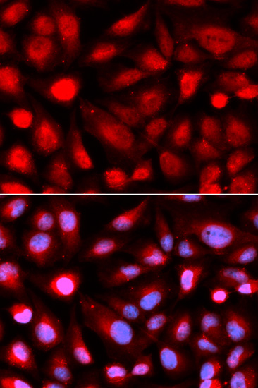 Immunofluorescence analysis of U2OS cell using RPL5 antibody. Blue: DAPI for nuclear staining.