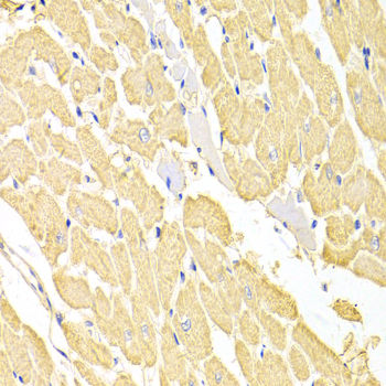 Immunohistochemistry of paraffin-embedded rat heart using RRM2 antibody at dilution of 1:100 (x400 lens).