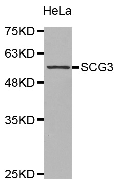 The protein encoded by this gene is a member of the chromogranin/secretogranin family of neuroendocrine secretory proteins. Granins may serve as precursors for biologically active peptides. Some granins have been shown to function as helper proteins in sorting and proteolytic processing of prohormones; however, the function of this protein is unknown. Two transcript variants encoding different isoforms have been found for this gene.
