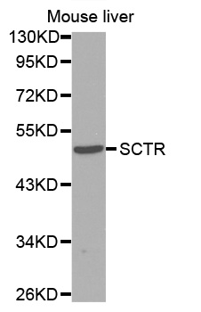 Western blot analysis of extracts of mouse liver cell line, using SCTR antibody.