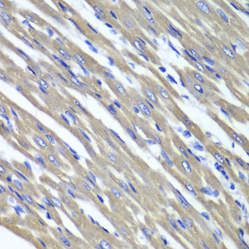 Immunohistochemistry of paraffin-embedded rat heart using SDHA antibody at dilution of 1:100 (400x lens).
