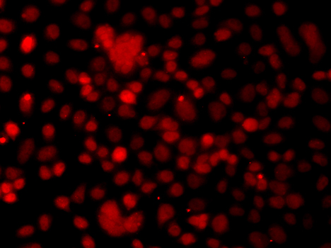 Immunofluorescence analysis of U2OS cell using SNAI2 antibody. Blue: DAPI for nuclear staining.