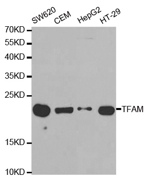 Western blot analysis of extracts of various celllines, using TFAM antibody.