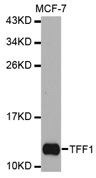 Western blot analysis of extracts of BT474 cells, using TFF1 antibody.
