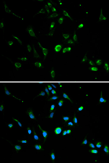 Immunofluorescence analysis of A549 cells using TP53 antibody.