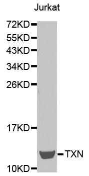TXN, TRDX, TRX, TRX1, ADF and SASP, belongs to the thioredoxin family. It participates in various redox reactions through the reversible oxidation of its active center dithiol to a disulfide and catalyzes dithiol-disulfide exchange reactions. TXN plays a role in the reversible S-nitrosylation of cysteine residues in target proteins, and thereby contributes to the response to intracellular nitric oxide. Nitrosylates the active site Cys of CASP3 in response to nitric oxide (NO), and thereby inhibits caspase-3 activity. TXN induces the FOS/JUN AP-1 DNA-binding activity in ionizing radiation (IR) cells through its oxidation/reduction status and stimulates AP-1 transcriptional activity.This antibody is specific to TXN.