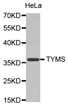 Thymidylate synthase catalyzes the methylation of deoxyuridylate to deoxythymidylate using 5,10-methylenetetrahydrofolate (methylene-THF) as a cofactor. This function maintains the dTMP (thymidine-5-prime monophosphate) pool critical for DNA replication and repair. The enzyme has been of interest as a target for cancer chemotherapeutic agents. It is considered to be the primary site of action for 5-fluorouracil, 5-fluoro-2-prime-deoxyuridine, and some folate analogs. Expression of this gene and that of a naturally occuring antisense transcript rTSalpha (GeneID:55556) vary inversely when cell-growth progresses from late-log to plateau phase. [provided by RefSeq, Jul 2008]