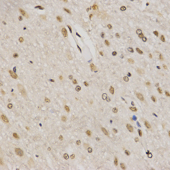 Immunohistochemistry of paraffin-embedded rat brain tissue using H3K79me3 antibody at dilution of 1:200 (x400 lens).