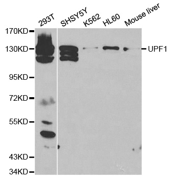 Western blot analysis of extracts of various cell lines, using UPF1 antibody.