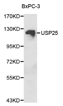 The ubiquitin (Ub) pathway involves three sequential enzymatic steps that facilitate the conjugation of Ub and Ub-like molecules to specific protein substrates. Through the use of a wide range of enzymes that can add or remove ubiquitin, the Ub pathway controls many intracellular processes such as signal transduction, transcriptional activation and cell cycle progression. USP25 (ubiquitin specific peptidase 25), also known as USP21, is a 1087 amino acid member of the peptidase C19 family. Expressed at high amounts in pancreas, kidney, skeletal muscle, testis, liver, heart, brain and lung, USP25 associates with the 26S proteasome and functions as a deubiquitinating enzyme in the Ub proteolytic pathway. Due to alternative splicing events, USP25 is expressed as two short, ubiquitously expressed isoforms and one long, muscle-specific isoform. The long isoform of USP25 is upregulated in myogenesis and is implicated in the pathogenesis of severe myopathies.