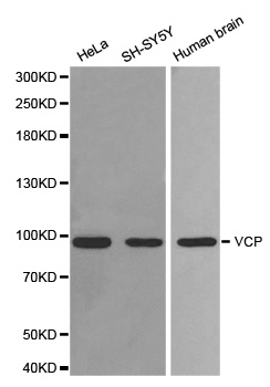 Valosin-containing protein (VCP) is a highly conserved and abundant 97 kDa protein that belongs to the AAA (ATPase associated with a variety of cellular activities) family of proteins. VCP assembles as a homo-hexamer, forming a ring with a channel at its center (1,2,3). VCP homo-hexamers associate with a variety of protein cofactors to form many distinct protein complexes, which act as chaperones to unfold proteins and transport them to specific cellular compartments or to the proteosome (4). These protein complexes participate in many cellular functions, including vesicle transport and fusion, fragmentation and reassembly of the golgi stacks during mitosis, nuclear envelope formation and spindle disassembly following mitosis, cell cycle regulation, DNA damage repair, apoptosis, B- and T-cell activation, NF-κB-mediated transcriptional regulation, endoplasmic reticulum (ER)-associated degradation and protein degradation (4). VCP appears to localize mainly to the endoplasmic reticulum; however, tyrosine phosphorylation is associated with relocalization to the centrosome during mitosis (5). In addition, following cellular exposure to ionizing radition, VCP is phosphorylated at Ser784 in an ATM-dependent manner and accumulates in the nucleus at sites of double-stranded DNA breaks (DSBs) (6). Exposure to other types of DNA damaging agents such as UV light, bleomycin or doxorubicin results in phosphorylation of VCP by ATR and DNA-PK in an ATM-independent manner (6).